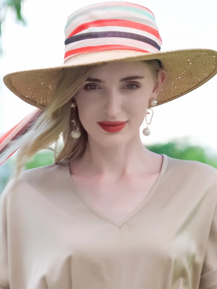 EE 7176 Summer New England Sweet and Lovely Wide Eave Bow Shade Beach Hat Children's Summer
