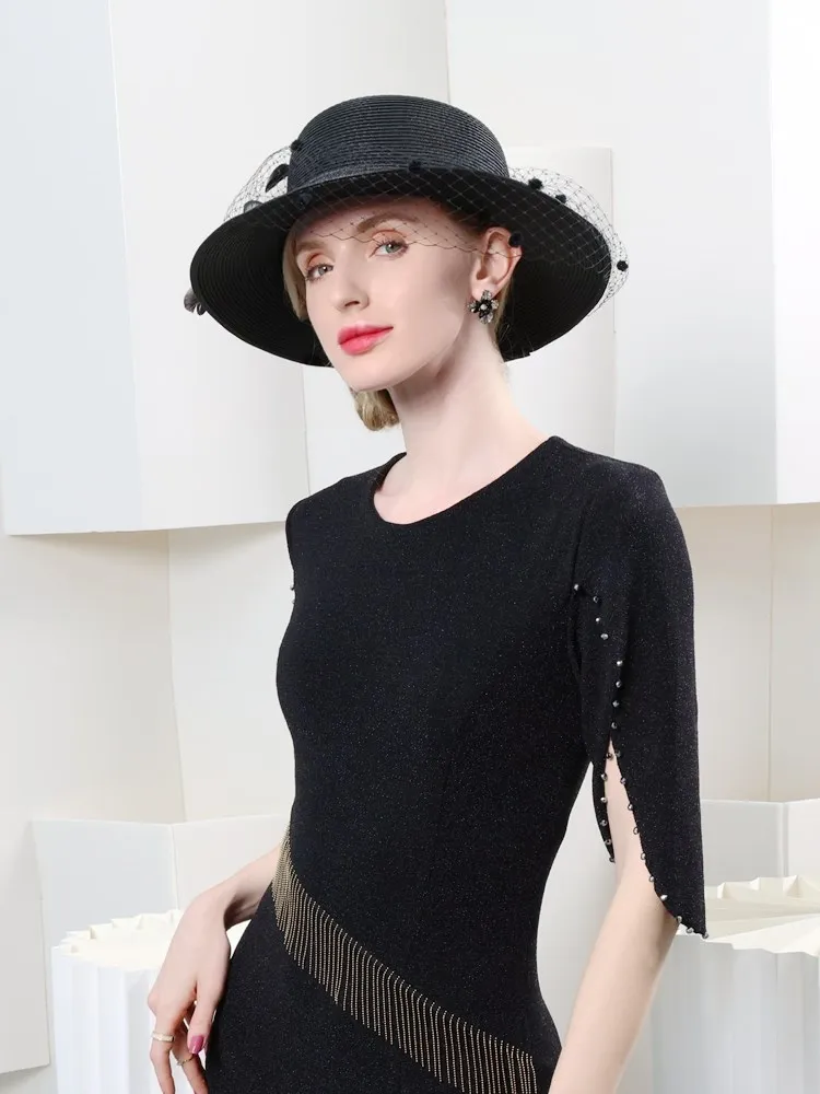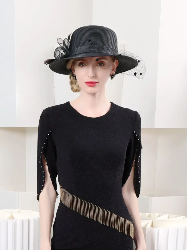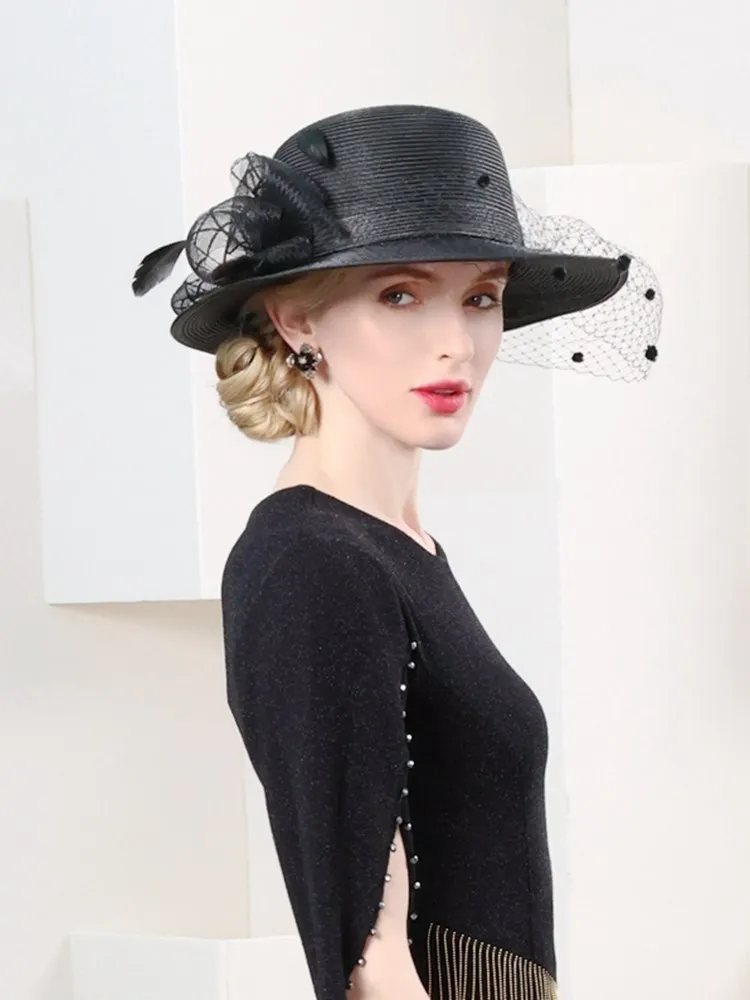 EE 7246 Spring/Summer New Feather Flower Decoration Straw Hat Elegant Sun Protection Versatile Hat Children