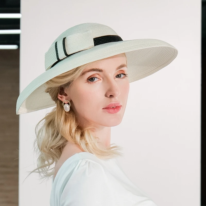 EE 7281 Summer/Elegant/Delicate/Adjustable/Bowknot/Stripe/Wide Brim/Sun Protection/Sunbonnet/Straw Hat/Polyester Hat