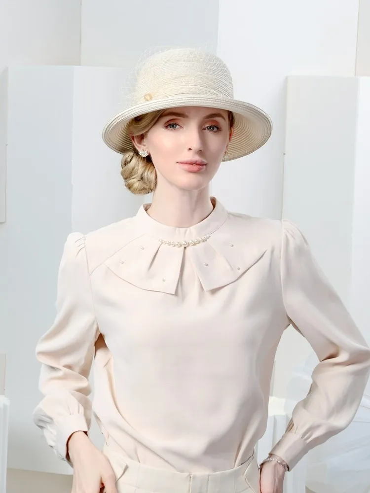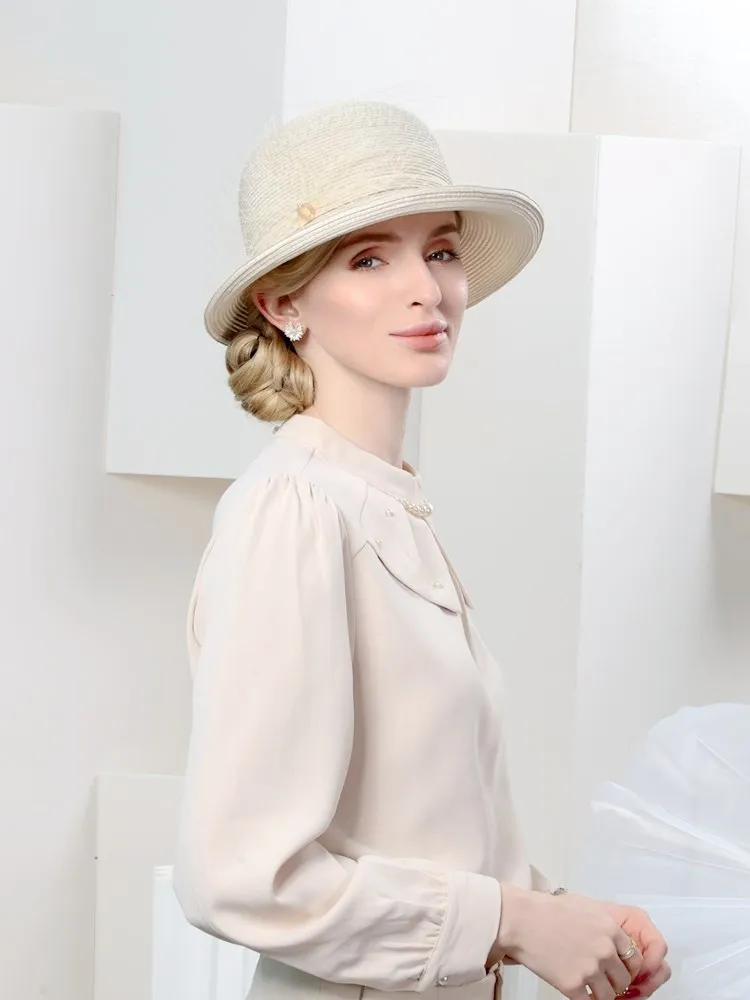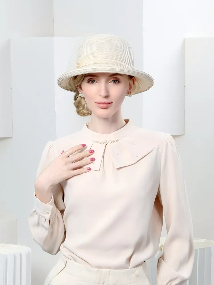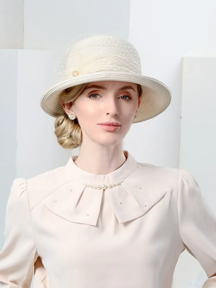 EE 7292 2023 Spring/Summer New Leisure Versatile Sunscreen Beach Hat Retro Mesh Decoration Straw Hat Female