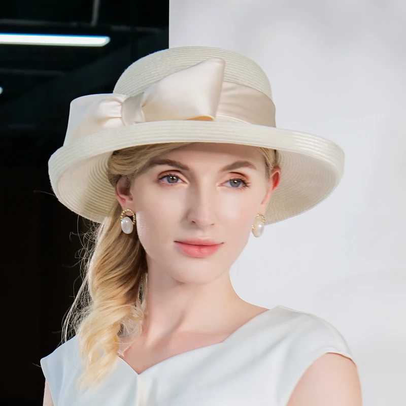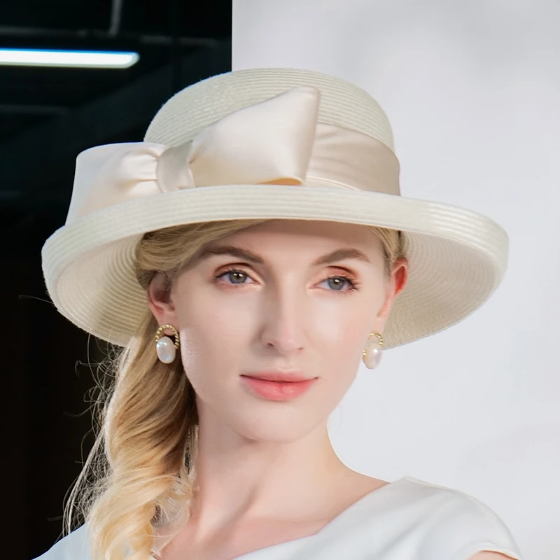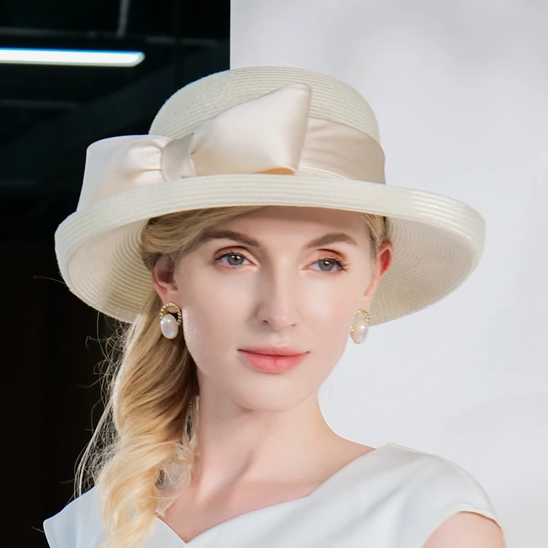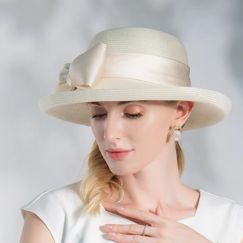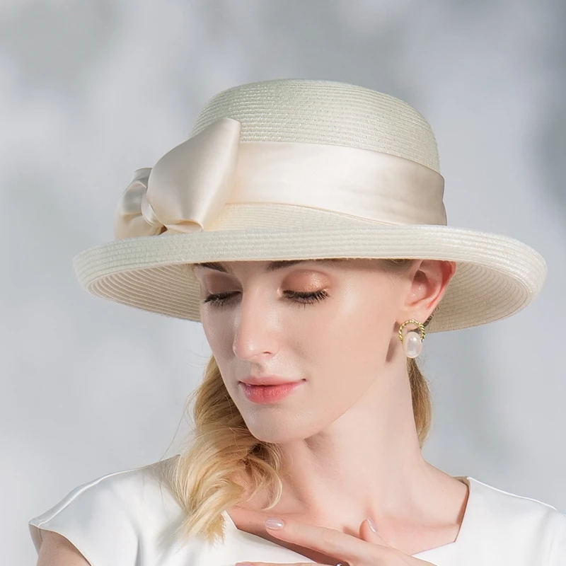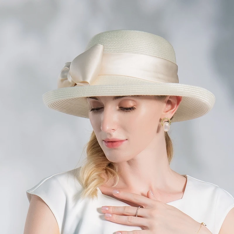 EE 7308 Summer/Elegant/Big Bowknot/Curled Brim/Casual/Daily Wear/Sun Protection/Sunbonnet/Straw Hat/Polyester Hat