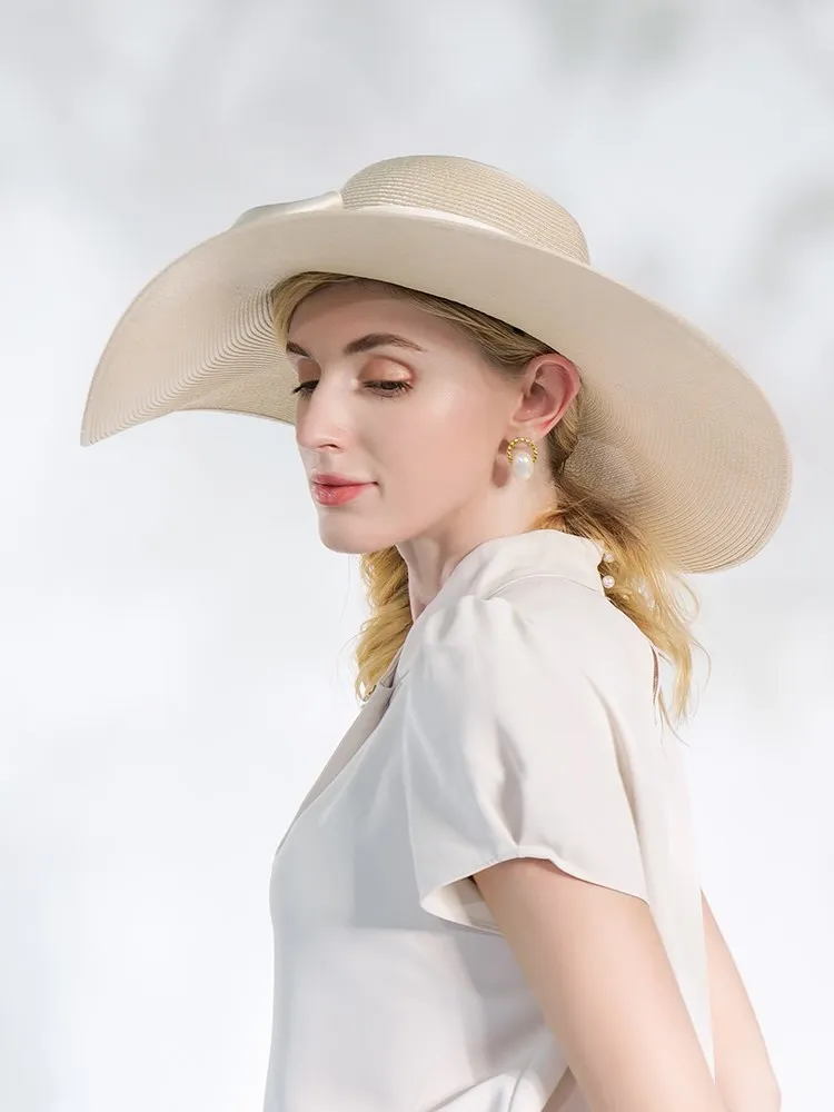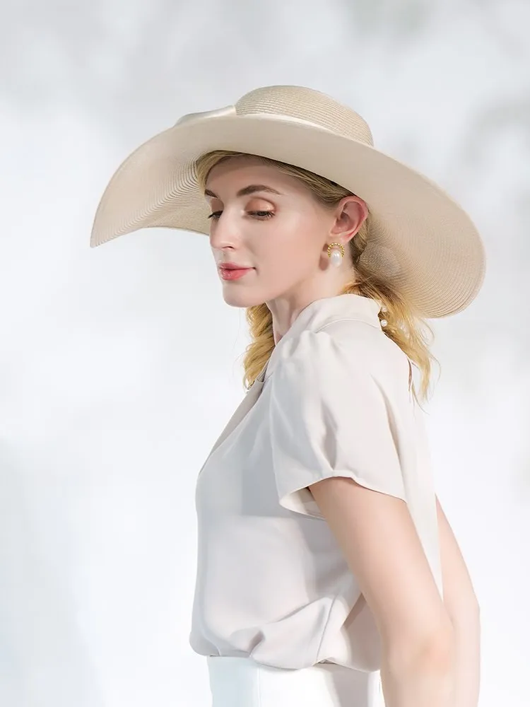 EE 7315 Summer New Fashion Elegant Temperament Goddess Travels with Wooden Ear Edge Bow Shade Hat Children's Summer