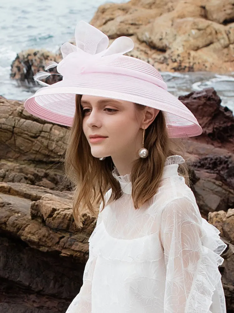 EE1015 Spring and Summer/Original Design/Fascinator/Bowknot/Stripe/Horsetail Yarn/Elegant/Ladies Day/Tulle Fabric Hats Headpiece