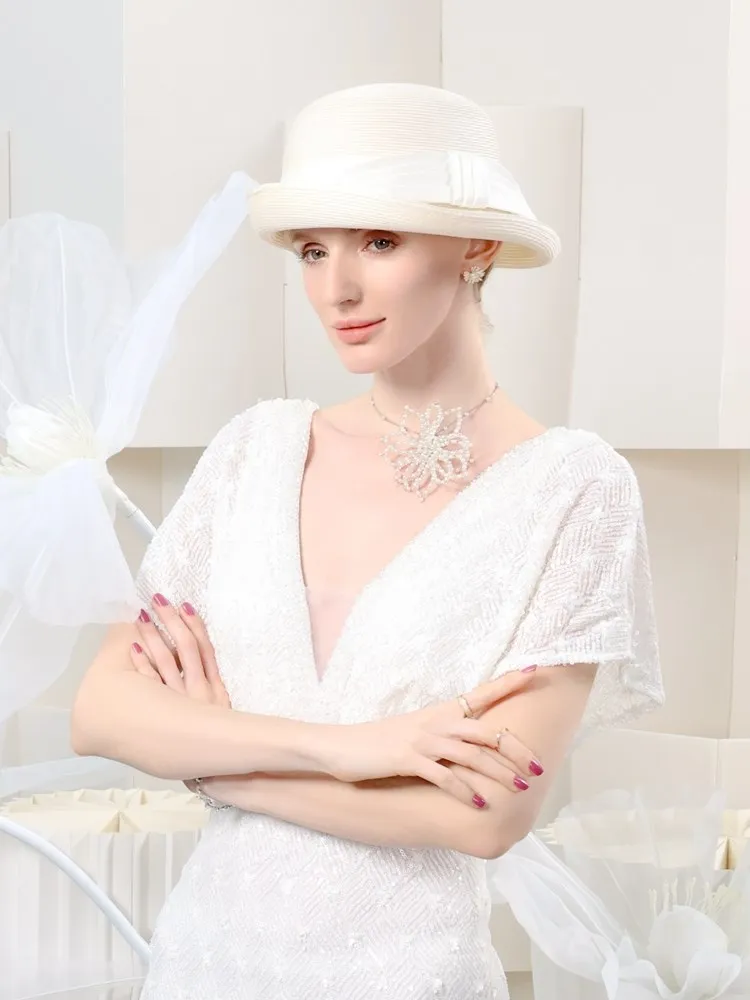 EE7066 Spring/Summer New Product Bowtie Women's Travel Elegant Leisure Hat