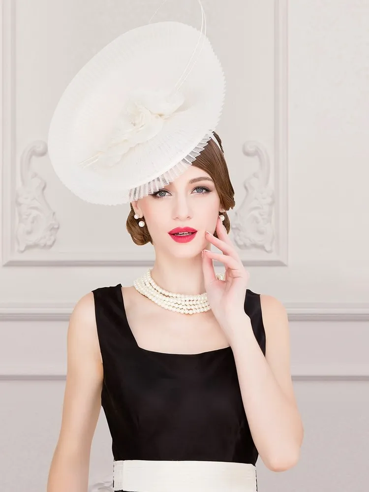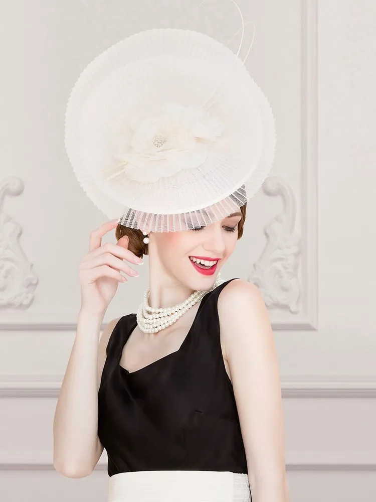 Ms EE 2311 original design silk flower natural feathers English jockey club yarn small female summer hat hat