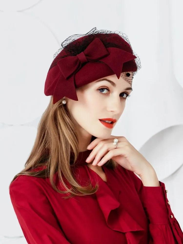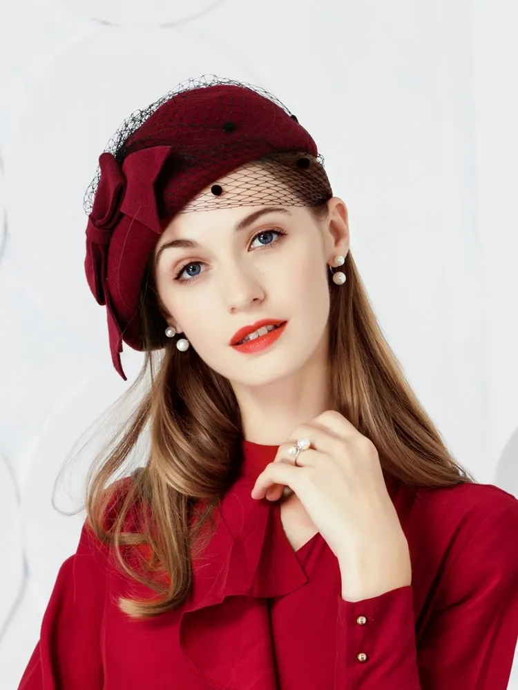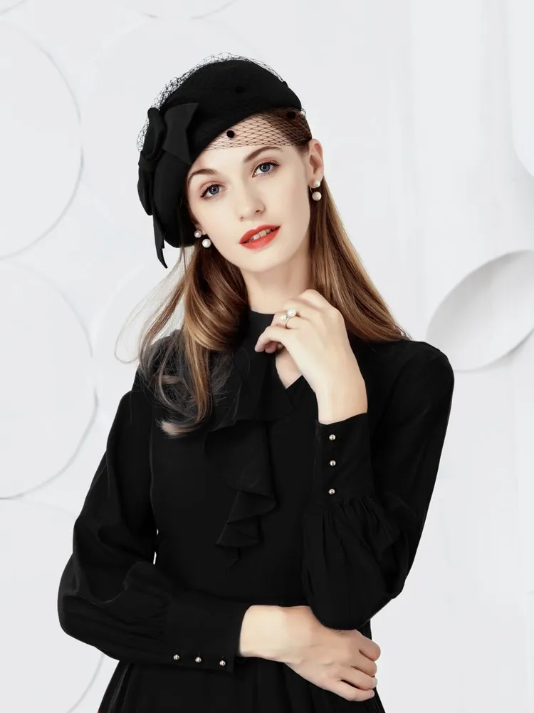 Ms EE 3048 new winter winter wool hat gauze beret female leisure joker hat